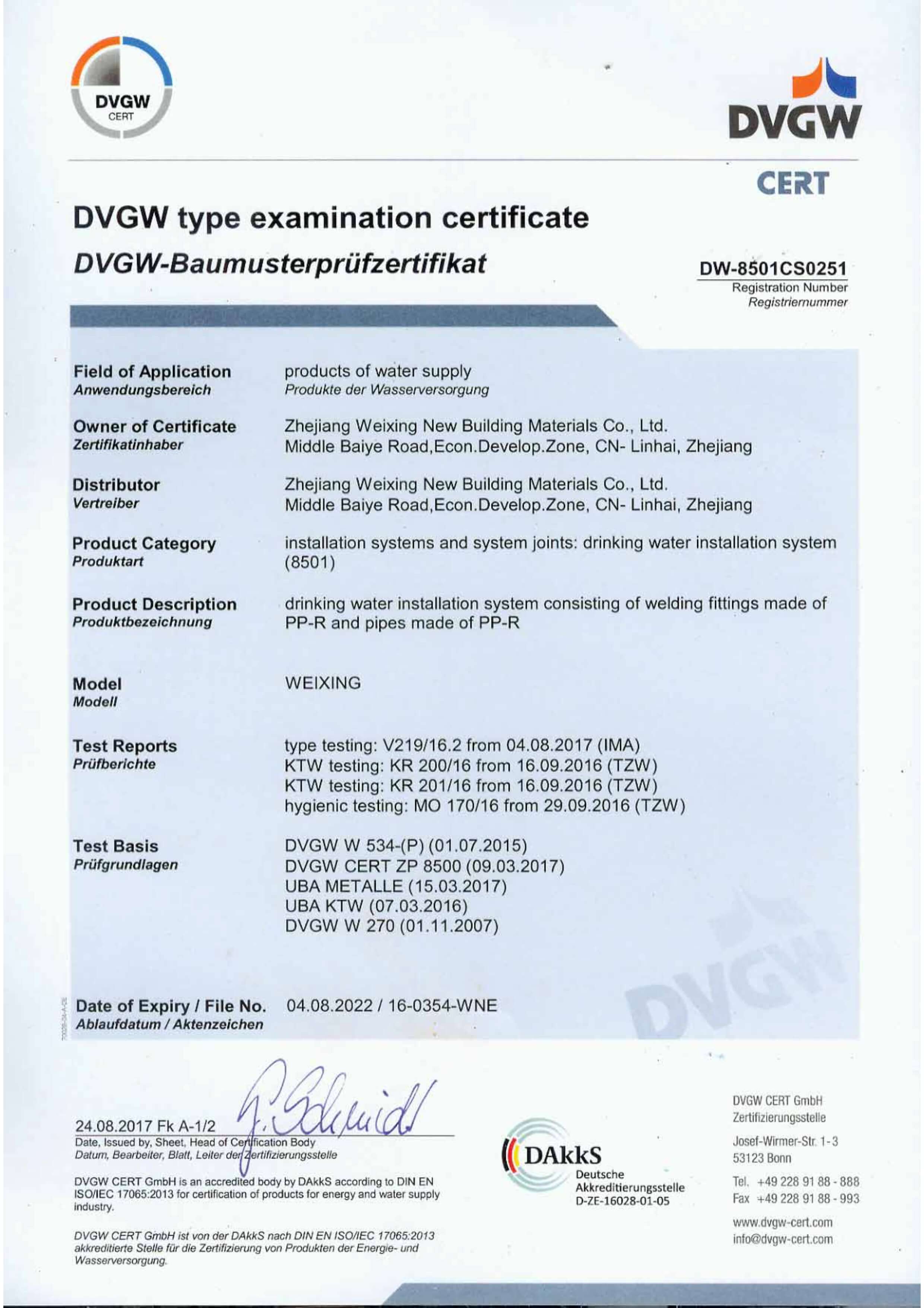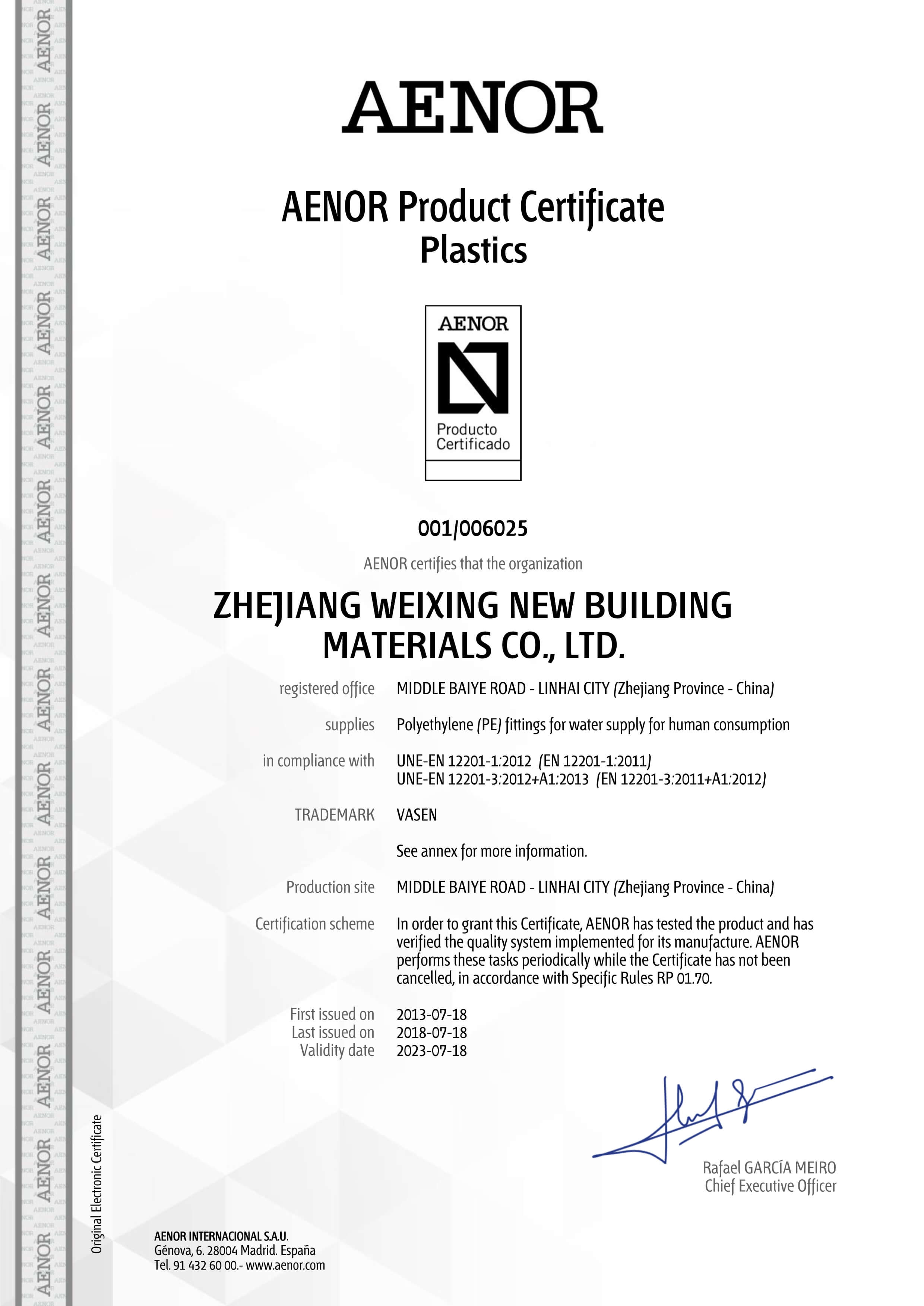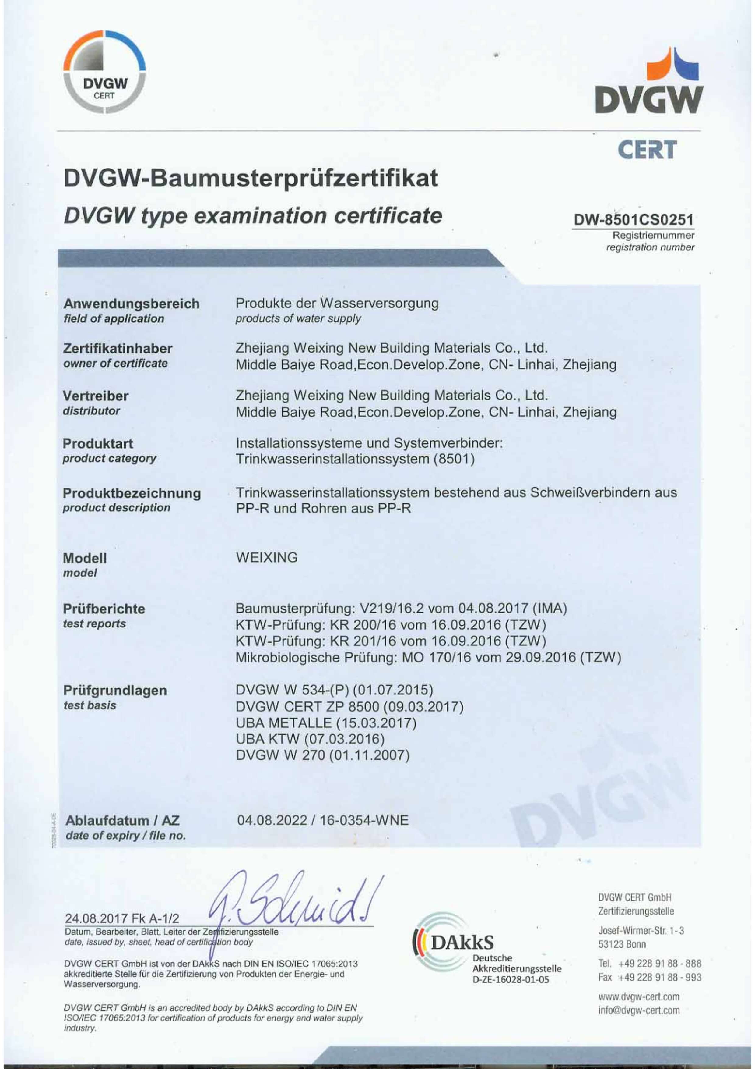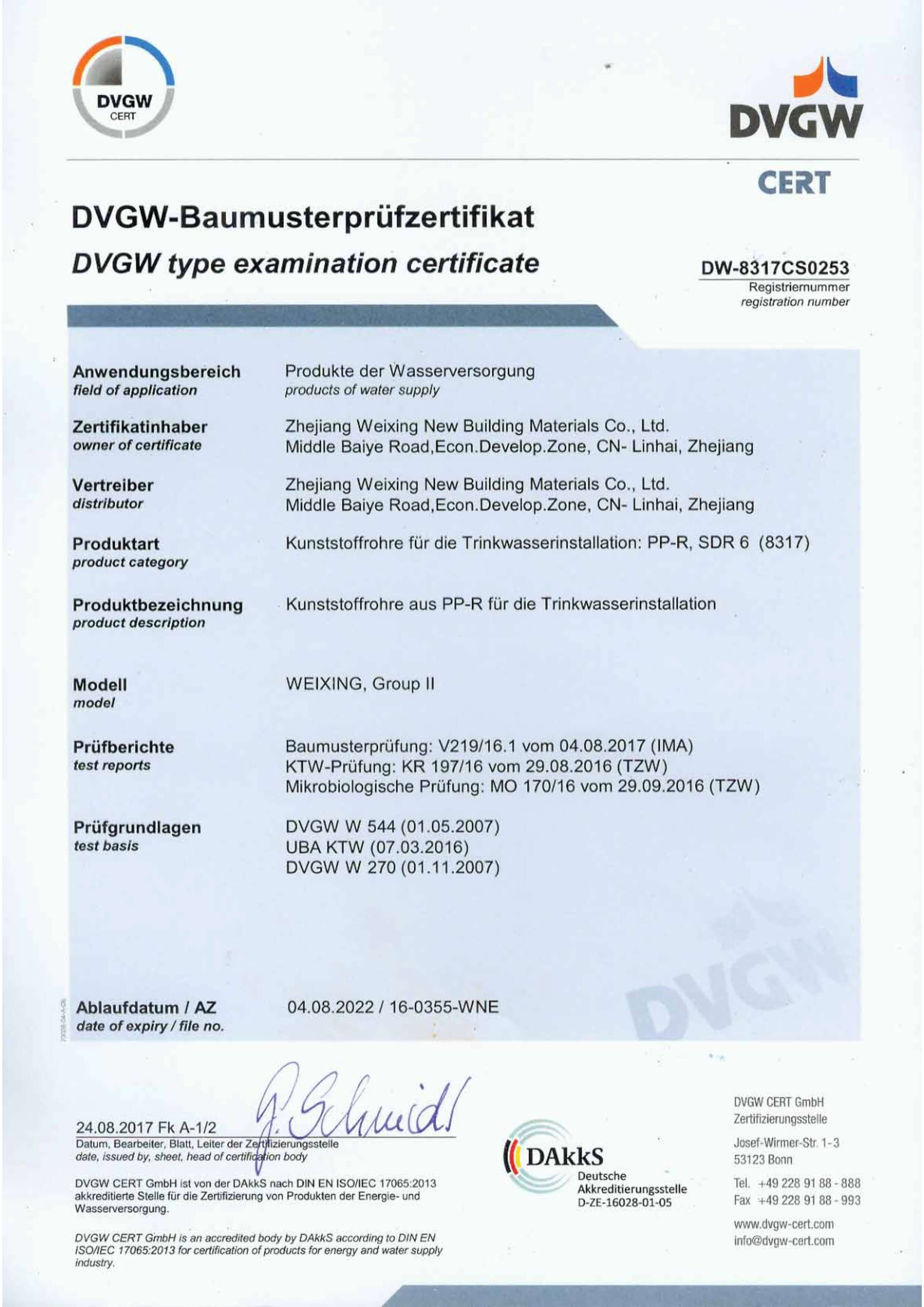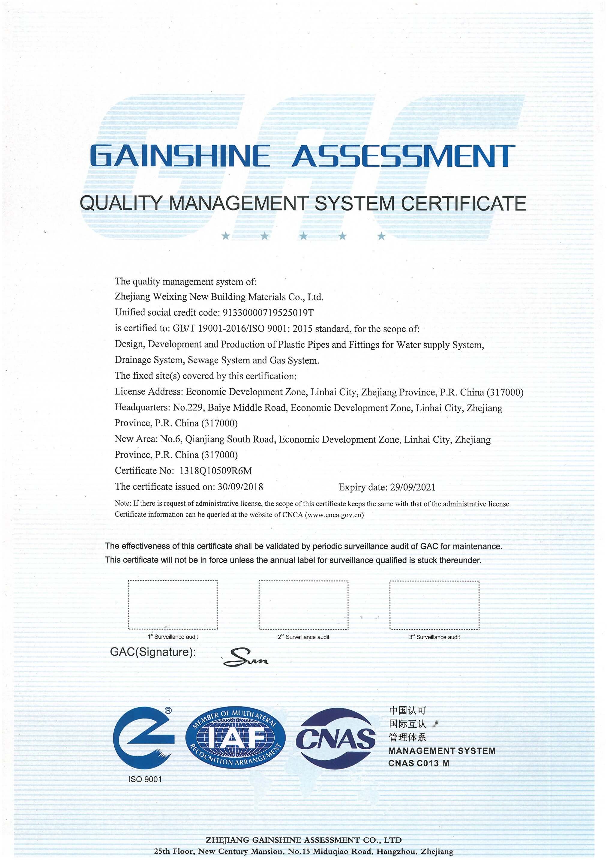 With five modern production bases in Zhejiang, Shanghai, Tianjin, Chongqing, and Xi’an, Weixing NBM now has solid strength in R&D: we have testing centers which have been accredited by CNAS (China National Accreditation Service for Conformity Assessment); we have high-tech research centers in provincial level; also through great efforts, Weixing NBM takes the lead in passing ISO9001 quality management system and ISO14001 environmental management system, and get the international approvals of DVGW, AENOR, WRAS, TUV, CE and so on.