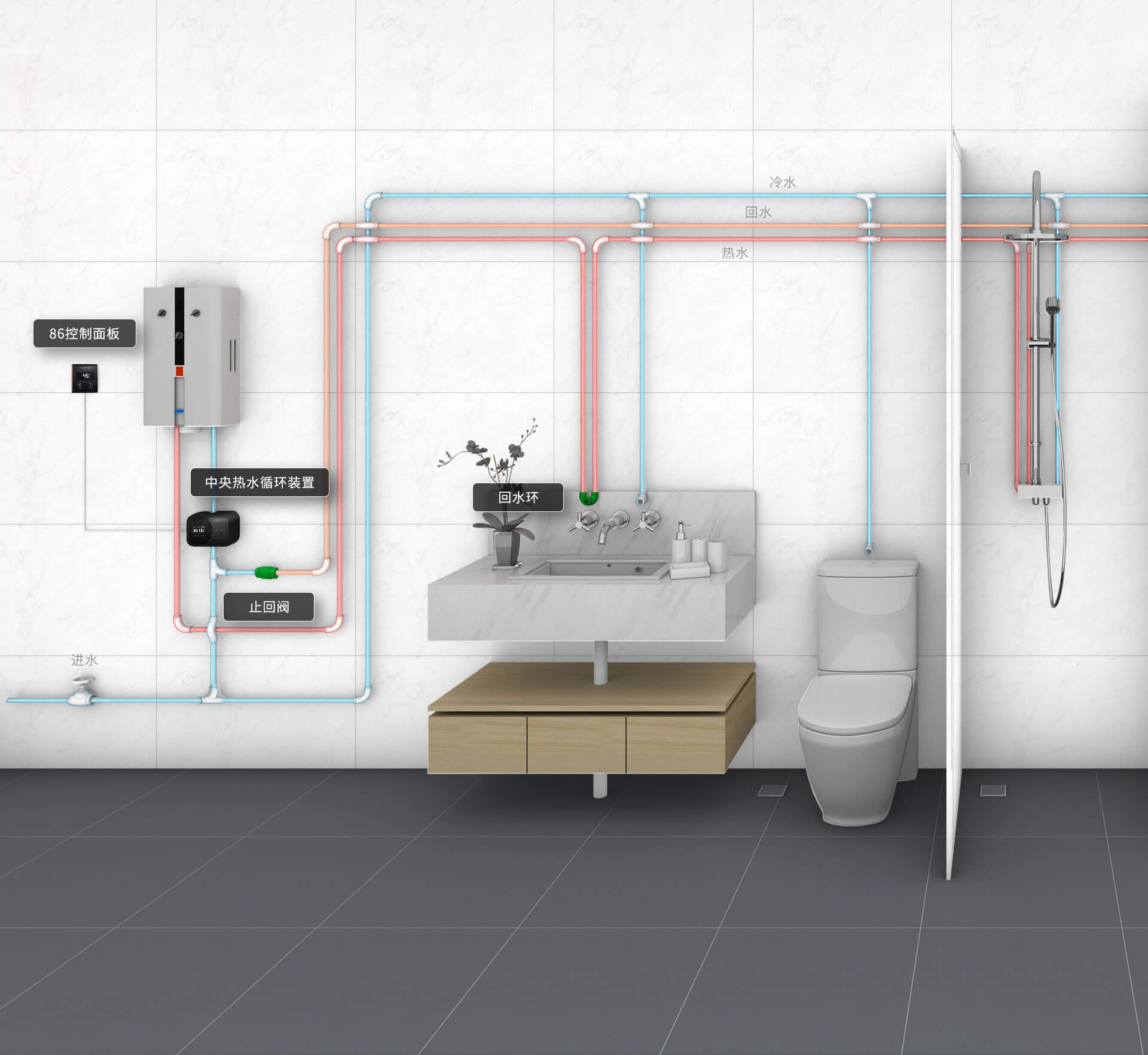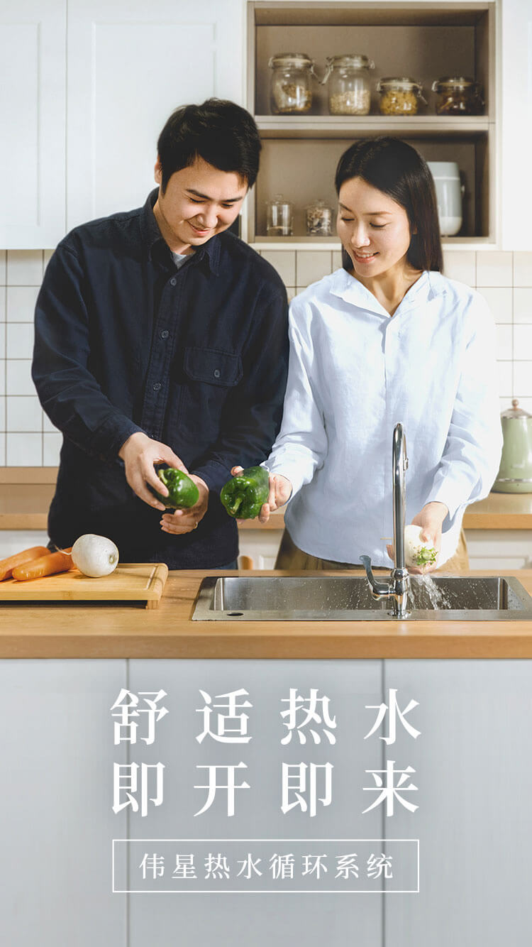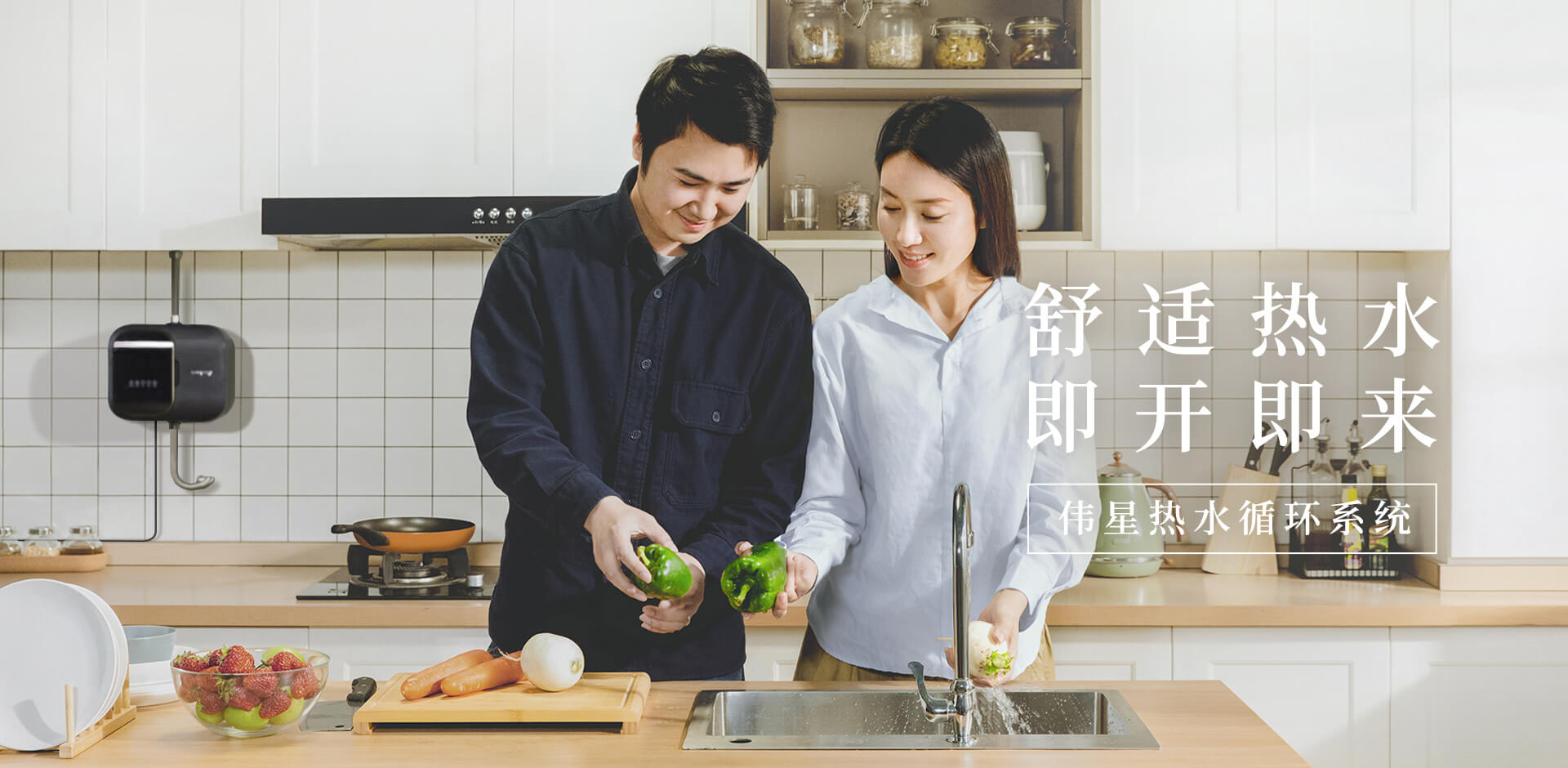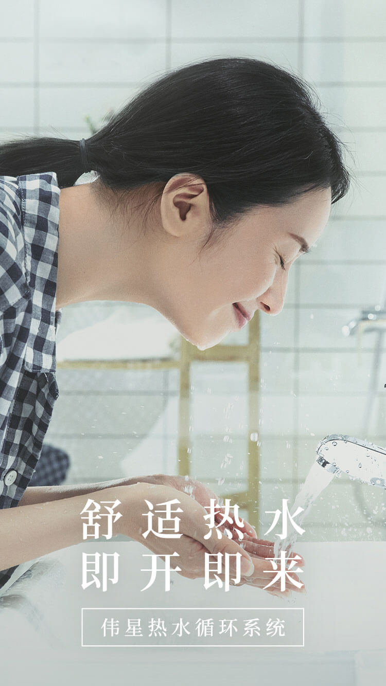 偉星通過科學管路系統設計,在你啟動開關時可提前對管道內的冷水進行循環預熱,讓你想用水的時候確保熱水即開即來。