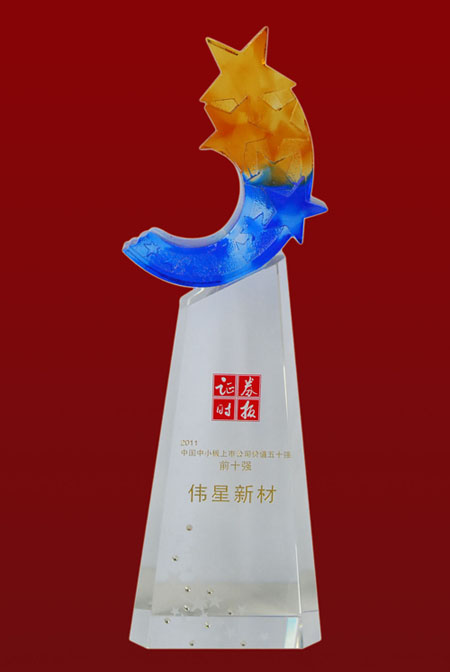 由證券時報主辦、新財富雜志社聯合主辦、中國上市公司協會擔任權威指導機構的2011年度中國上市公司價值評選活動結果揭曉。偉星新材榮獲2011中國中小板上市公司價值五十強前十強,公司董事會秘書兼副總經理譚梅女士榮獲2011中國中小板上市公司百佳董秘。