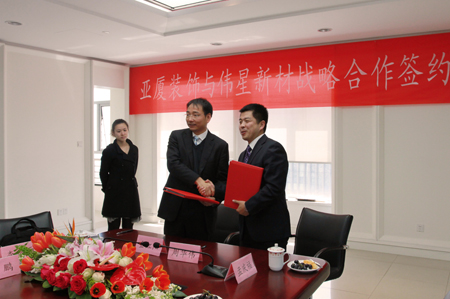 偉星新材與亞廈裝飾的成功簽約,是杭州分公司開啟杭城工裝領域的一個新起點、新征程,相信在雙方的共同努力下,合作定會雙贏。