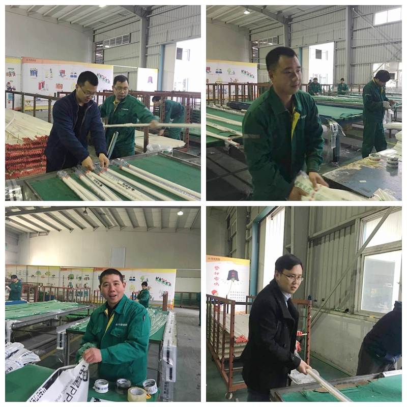 一方面是市場迫切的需求;另一方面是生產(chǎn)包裝的供不應(yīng)求,在如此狀態(tài)下,管道車間、波紋管車間和制造部成員自愿自發(fā)組成“忙季作戰(zhàn)小分隊(duì)”,合理排班,輪流到車間參與包裝,緊鑼密鼓地投入到生產(chǎn)一線,以減輕車間忙季的壓力。