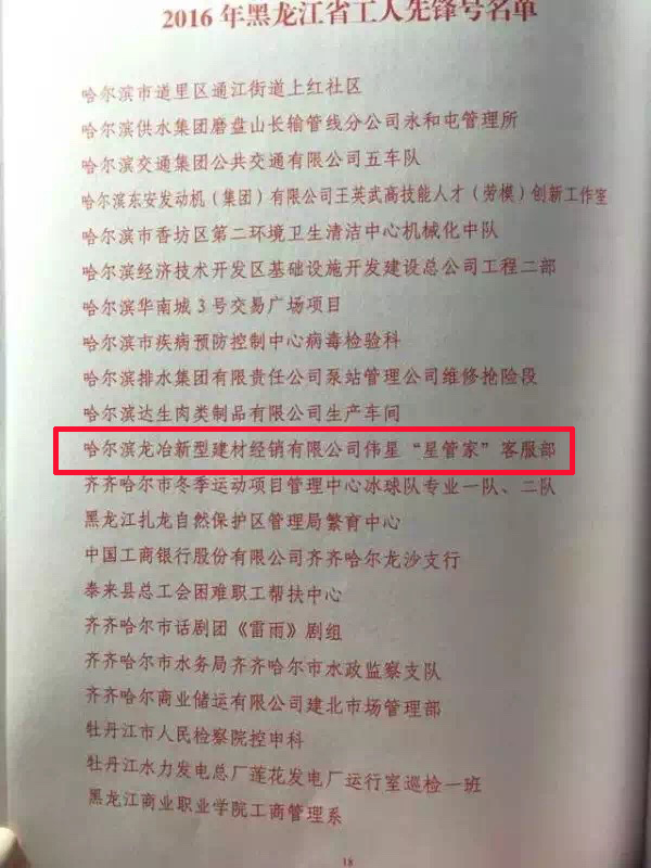 黑龍江省人大常委會副主任等領導對偉星新材、偉星星管家服務團隊給予了高度認可與肯定,并授予偉星星管家服務團隊工人先鋒號榮譽稱號。此榮譽正是整個東北地區星管家服務的縮影。
