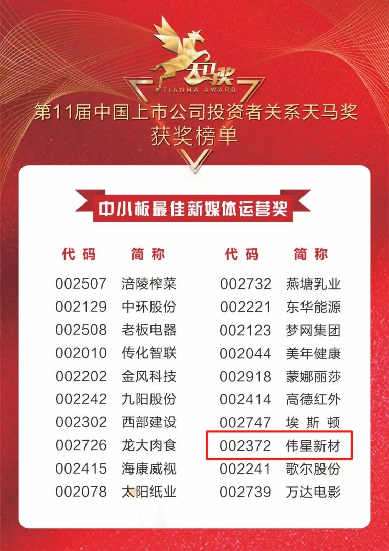 偉星新材獲評“中小板最佳新媒體運營獎”。