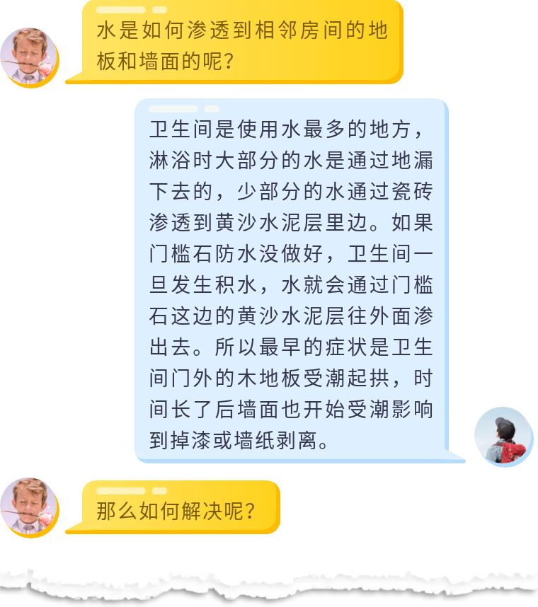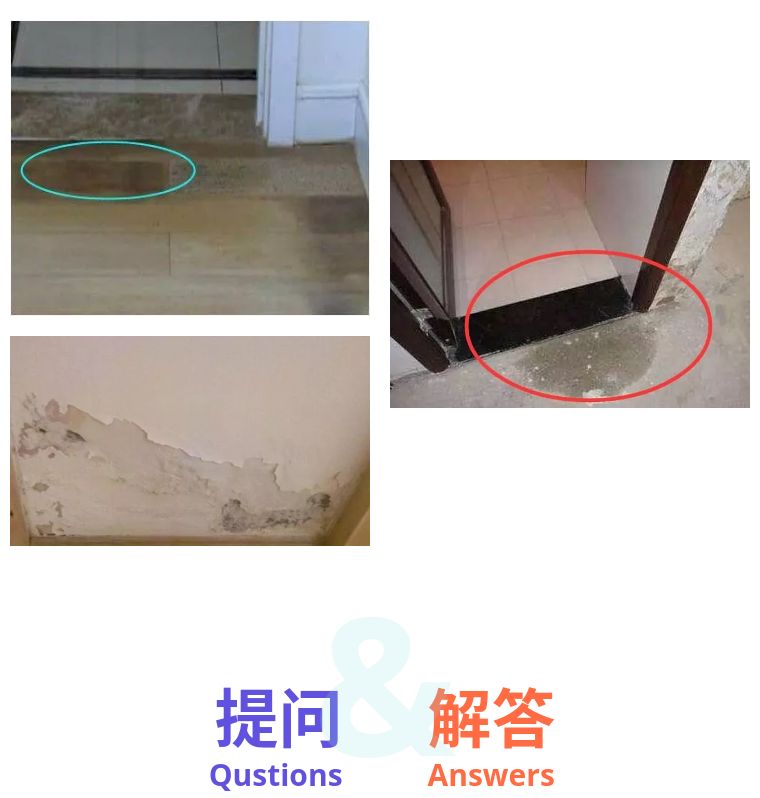 我們經常碰到以下這種情況,靠近衛生間門外的地板和墻面嚴重受潮和發霉。那么問題來了,淋浴房明明距離門口那么遠距離,水是如何滲透過去的呢?其實,在做防水的時候,大家往往會忽視了門檻石這一塊的防水,從而導致滲漏的問題發生。