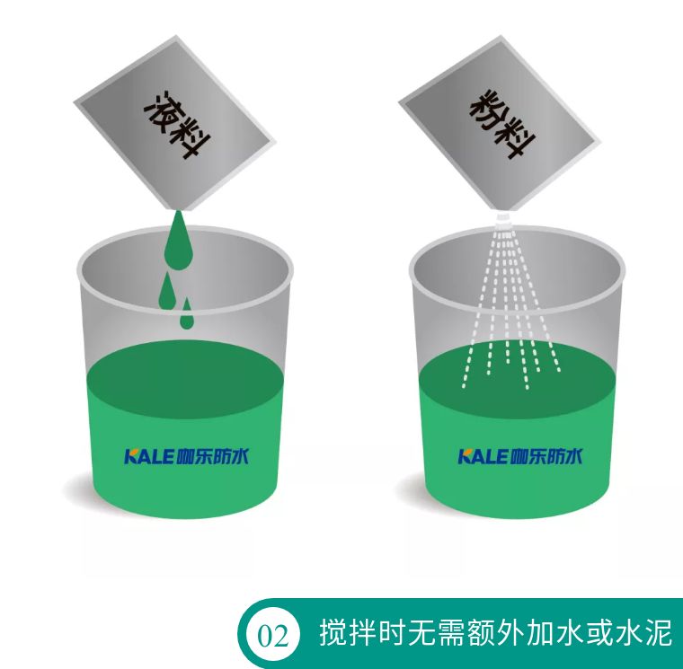 大部分雙組分防水涂料的粉料和液料都是按比例調(diào)好的,可以直接攪拌使用即可。如果額外的加水或水泥,就會破壞原有配方設(shè)計(jì)的性能,使產(chǎn)品的性能受到影響。