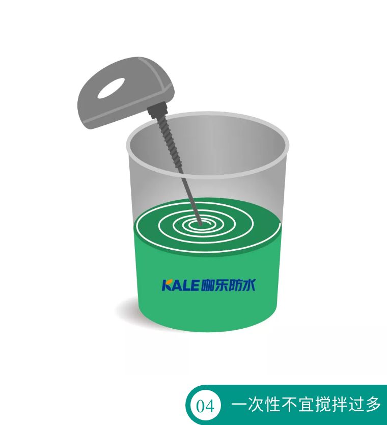 防水涂料采用機(jī)械攪拌才能更好的將粉料液料混合在一起。推薦攪拌時(shí)間為3-5分鐘,攪拌好后檢查防水涂料是否攪拌均勻,如果不夠均勻,還可以繼續(xù)攪拌3-5分鐘,以確保完全均勻。