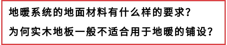 地暖系統要求地面裝飾材料熱阻小、吸水率低、膨脹變形小。瓷磚、大理石類地面材料尤其適用,其次選地暖專用實木復合類地板。