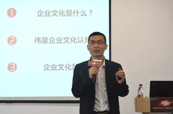 開學第一課,新材學院蔡才俊為大家帶來了《企業文化》課程,將他對偉星文化的理解轉化成言簡意賅的話語,深入淺出地闡述了公司的文化內涵以及如何踐行偉星文化。