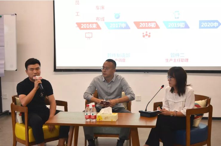 邀請兩位青年骨干結合自身的工作經歷現身分享。應用技術部經理助理劉欣偉從技術營銷轉型新產品推廣,是他對困難的挑戰;他堅信拼盡全力做自己不擅長的事,才能成為更好的自己。