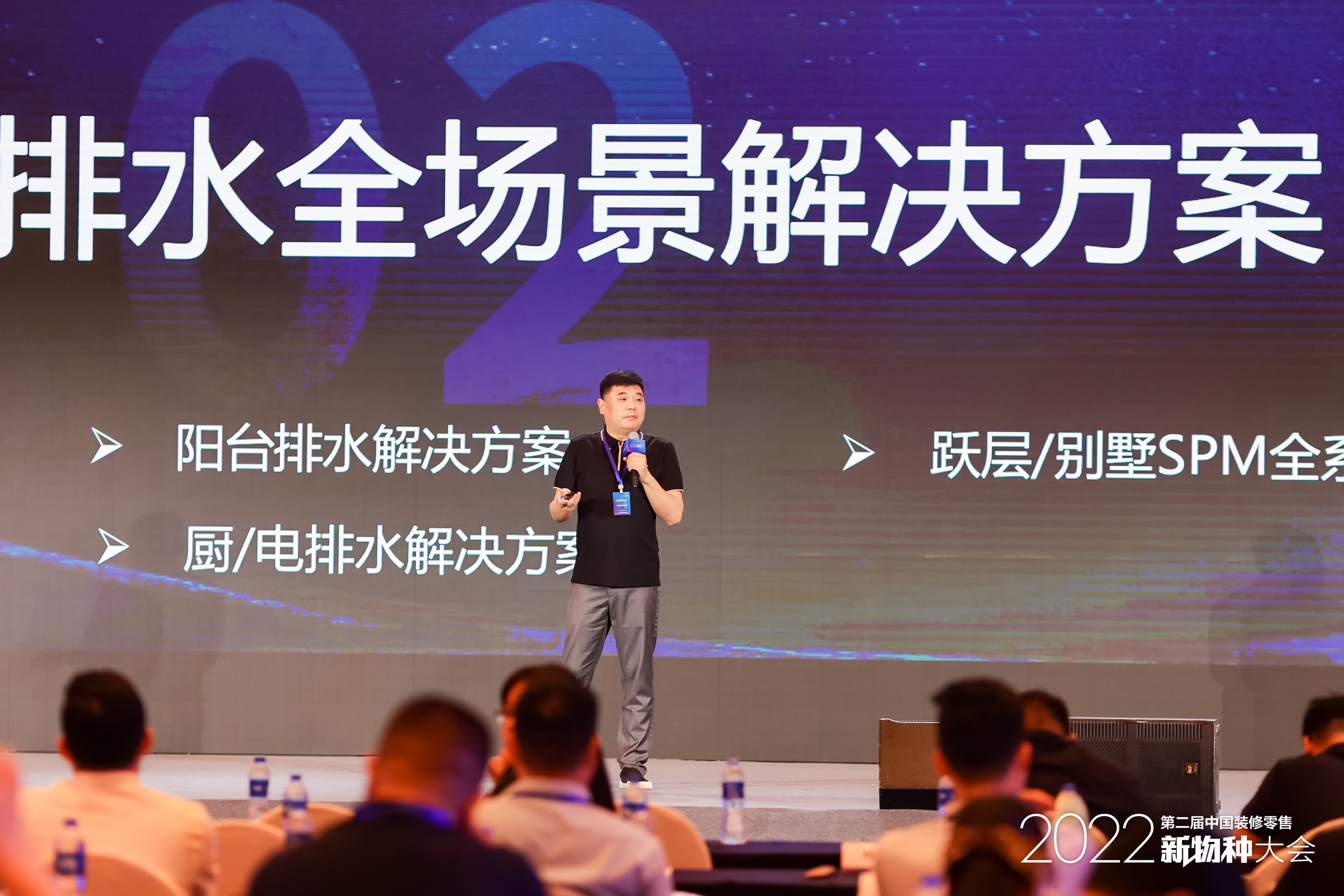 李大治在大會上發(fā)表了主題為“偉星SPM系統(tǒng)在建筑住宅內全場景解決方案——助力裝企高效增長”的演講。演講中,李大治圍繞家裝隱蔽工程排水系統(tǒng)中用戶的痛點,詳細講解了偉星SPM系統(tǒng)的全場景解決方案,即“降板衛(wèi)生間解決方案”“非降板衛(wèi)生間排水解決方案”“陽臺排水解決方案”“廚/電排水解決方案”“躍層/別墅SPM全系統(tǒng)解決方案”,幫助裝企解決整屋排水問題,各排水點體驗升級問題,解決裝企與用戶的后顧之憂。