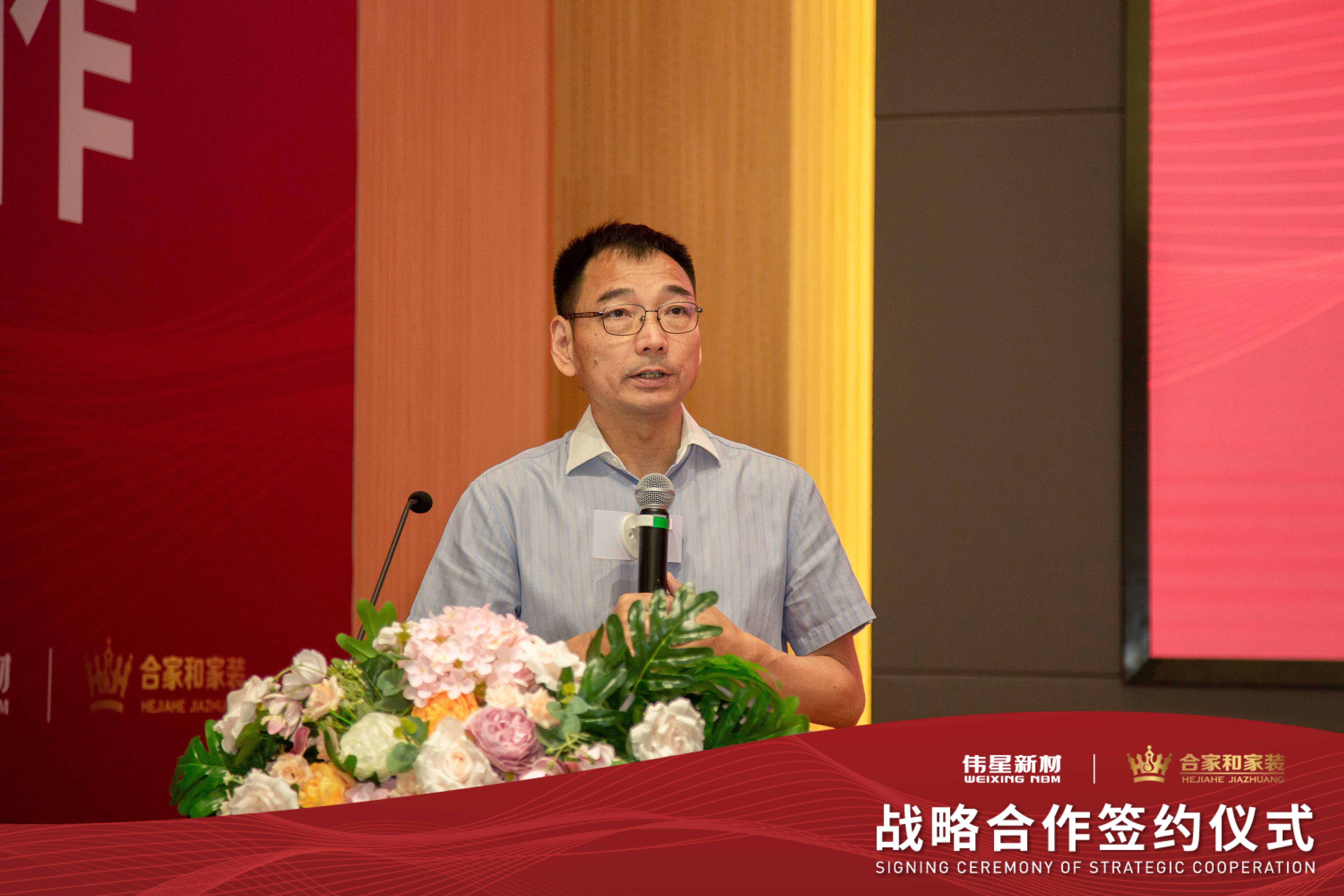 交流會議結束后,正式開啟戰略簽約儀式。合家和家裝集團董事長王永濤、合家和家裝集團總裁王云慶,偉星新材董事長兼總經理金紅陽、偉星新材副總經理鄭敏君、偉星新材總經理助理蘇烈強、鄭靖等領導共同參會。儀式首先介紹雙方企業概況,隨后由王永濤、金紅陽分別致辭。