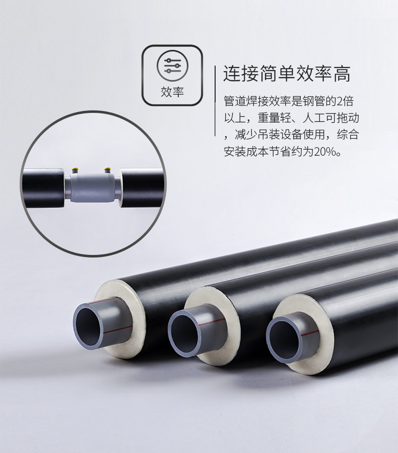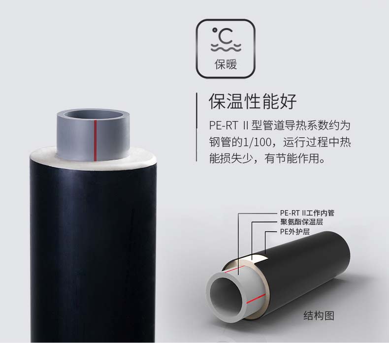 二級供熱管網是從換熱站到小區單元門口的庭院供熱管網。偉星PE-RT Ⅱ型集中供熱保溫管工作管采用進口PE-RT Ⅱ原料生產,其耐溫、耐壓性能優異;保溫層采用聚氨酯發泡材料,發泡密度均勻、閉孔率高,具有優異的保溫性能和抗壓強度; 外護層選用HDPE原料,耐刮檫,耐開裂性能好,施工便捷效率高,節水、節電、節熱,綜合成本可節省20%。
