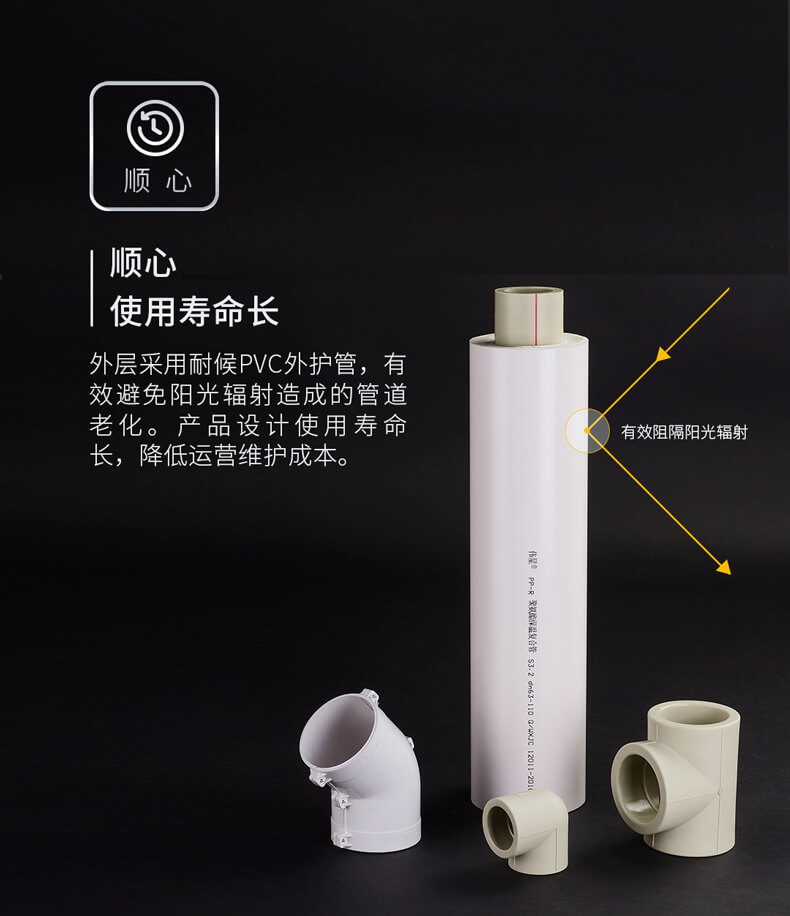 外護層為高品質耐候PVC管道,有效保護保溫層。