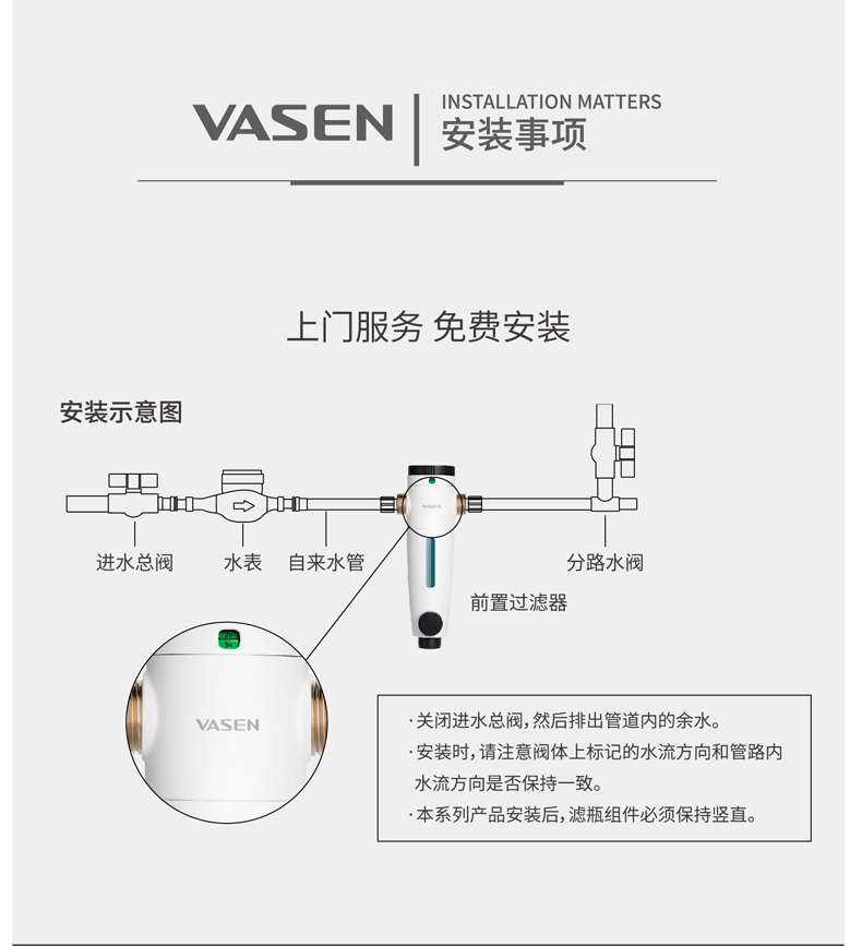 VASEN前置過濾器融合40微米高精度不銹鋼濾網(wǎng)、漩潔凈水反沖洗排污技術(shù)、PA耐壓8.0MPa透明濾瓶、隔鉛工藝銅閥體、大通量流道設(shè)計(jì)等8大核心優(yōu)勢,致力為中國家庭解決更多用水安全問題。