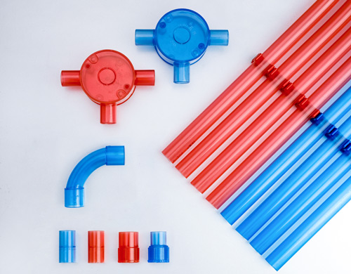 偉星PVC-U可視化電工套管具有透明可視、直接冷彎抗壓強、紅藍可辨強弱電、環保可靠、光滑易穿線等優點。